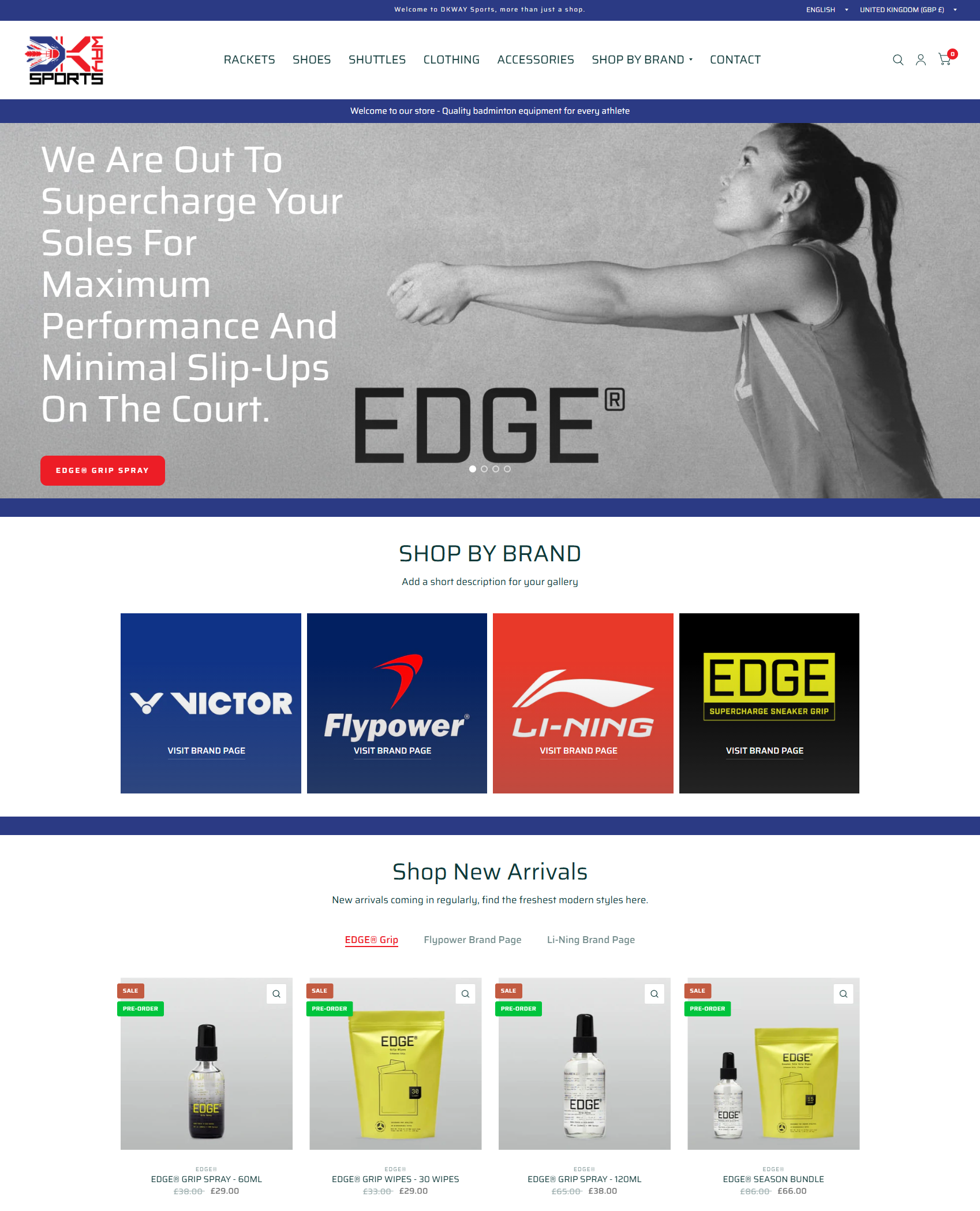 Working with Li-Ning Shop UK, a branded sports equipment store was created.